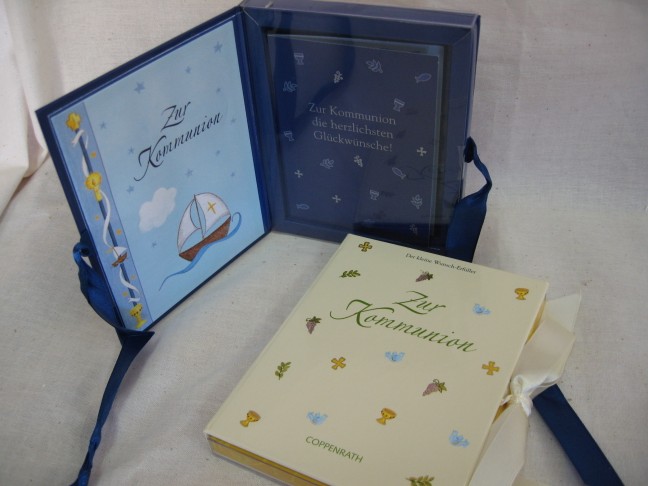 | | E10:Zu Deiner Kommunion: Geschenksbuch zur Kommunion mit Satineinband und Stickerei mit Texten, Gebeten, Liedern und 4 persönlichen Eintragseiten € 13,50 |
